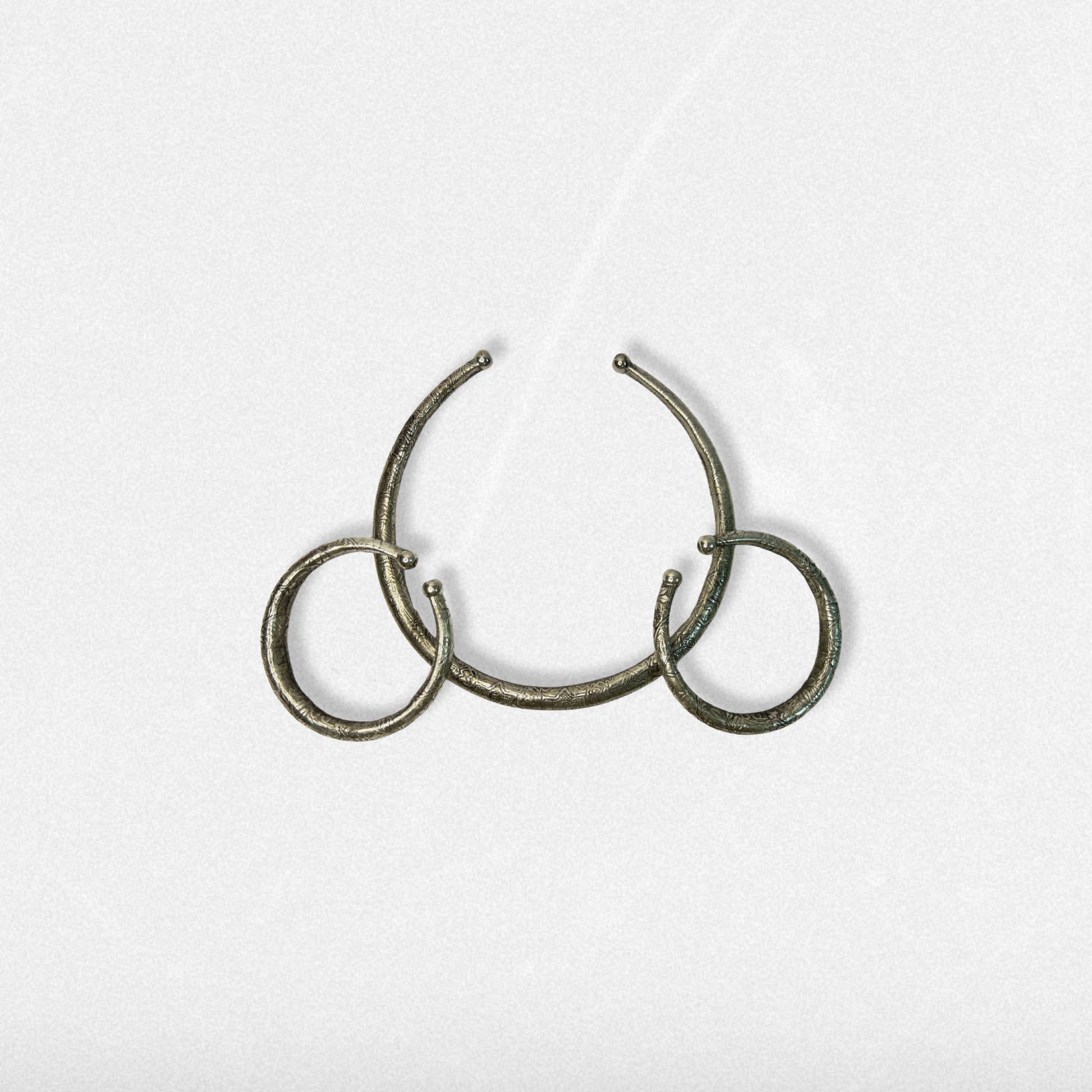 A bold ode to raw craftsmanship, these oxidized bangles and choker feature a hammered and etched texture, echoing ancient tribal adornments. Its weight and finish strike the perfect balance between rustic and regal, making it a go-to for those who prefer minimal yet statement accessories.