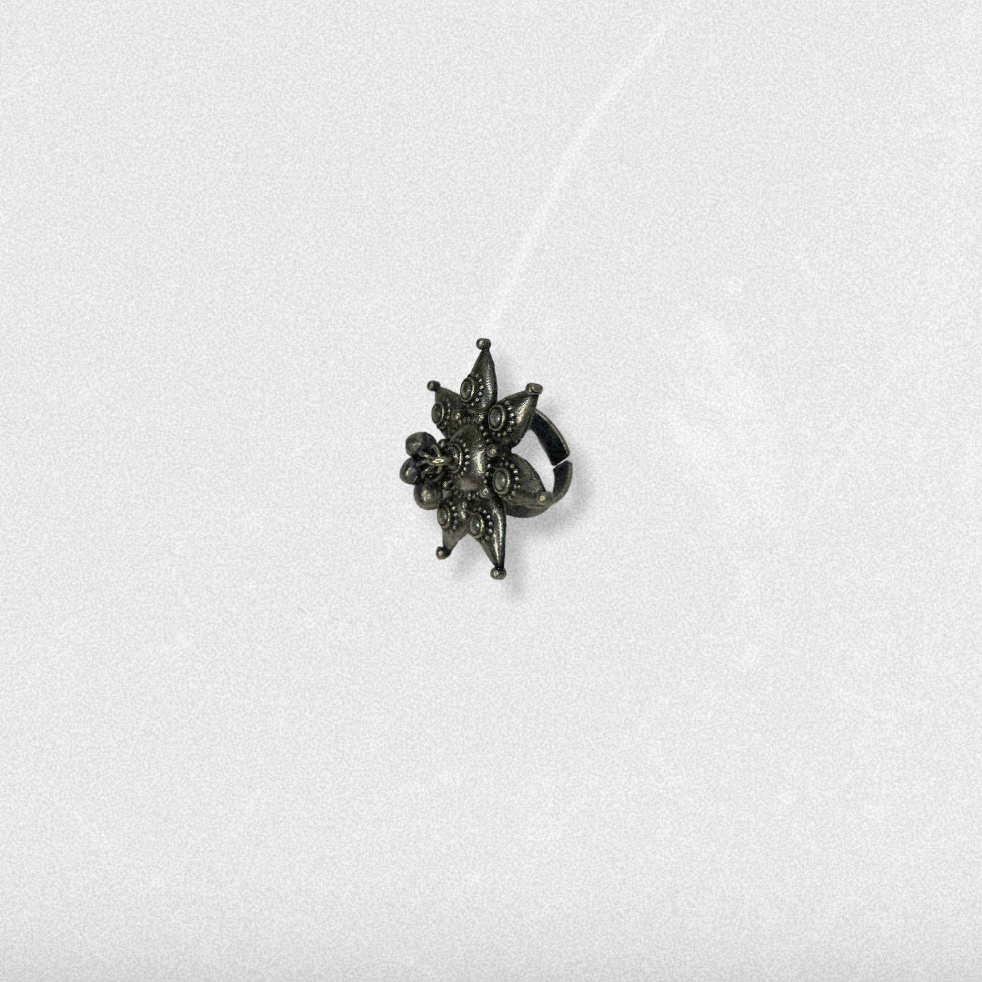 This oxidised ring with pearl drop detailing is a moving canvas—etched with a Rajasthani barat procession featuring horses, the groom, and musicians. It celebrates the vibrance of weddings, sisterhood, and shared joy.