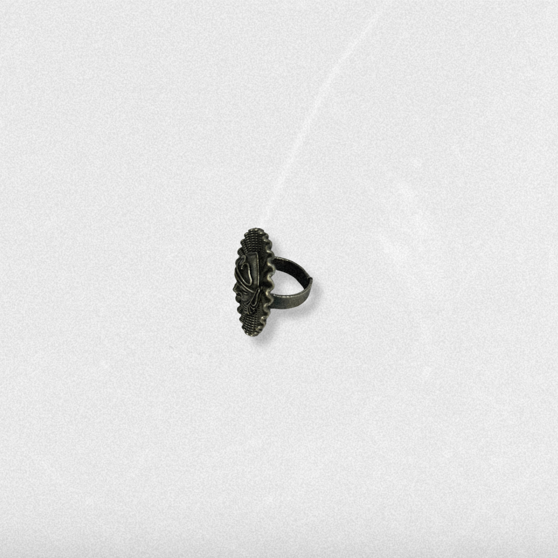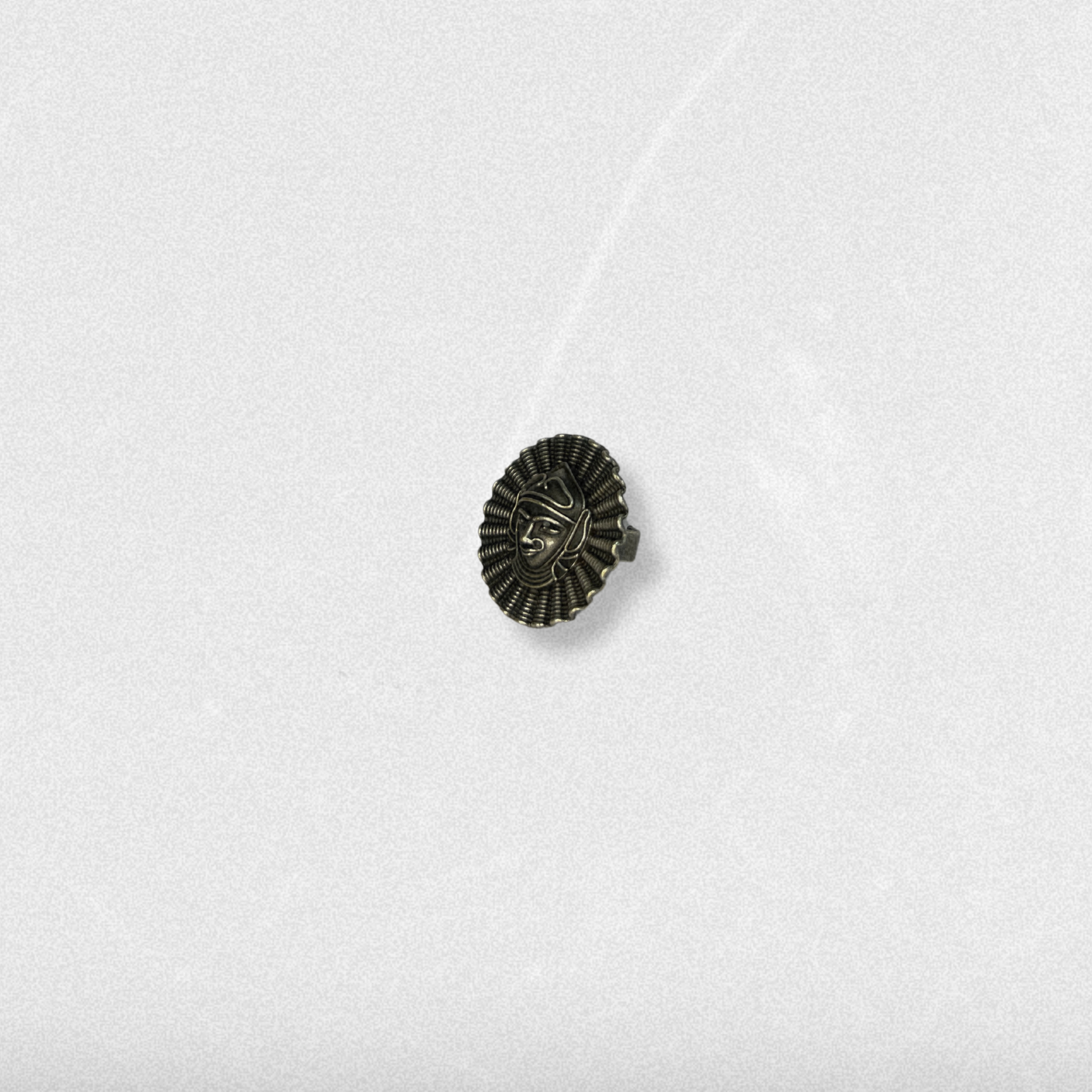 A circular coin ring etched with a queenly face — bold, fearless, and majestic. This piece tells tales of matriarchs past and present.